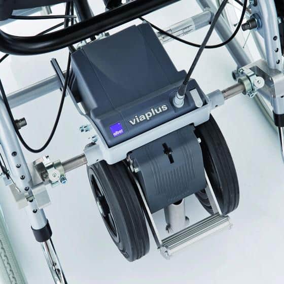 The Alber Viaplus V12 is a power pack which fits the Invacare Azalea and Clematis comfort wheelchairs, relieving carers from the effort of manually pushing the chair.