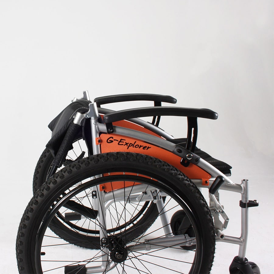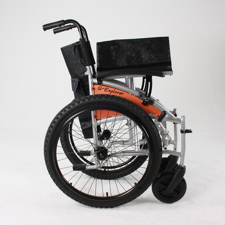 Never be afraid to explore outdoor with the Excel G-Explorer. With its 24 inch mountain bike tyres for all terrain, this wheelchair is designed for any adventure. This wheelchair has been designed to easily fold and disassemble for transportation. With its ability to fit into almost any car boot, long drives are no hassle. The backrest angle has also been adjusted to give the user a more natural seating position; providing perfect precision lumbar support. To make attendant experience more comfortable, we have added height adjustable push handles so every adventure is just as enjoyable for both user and attendant.