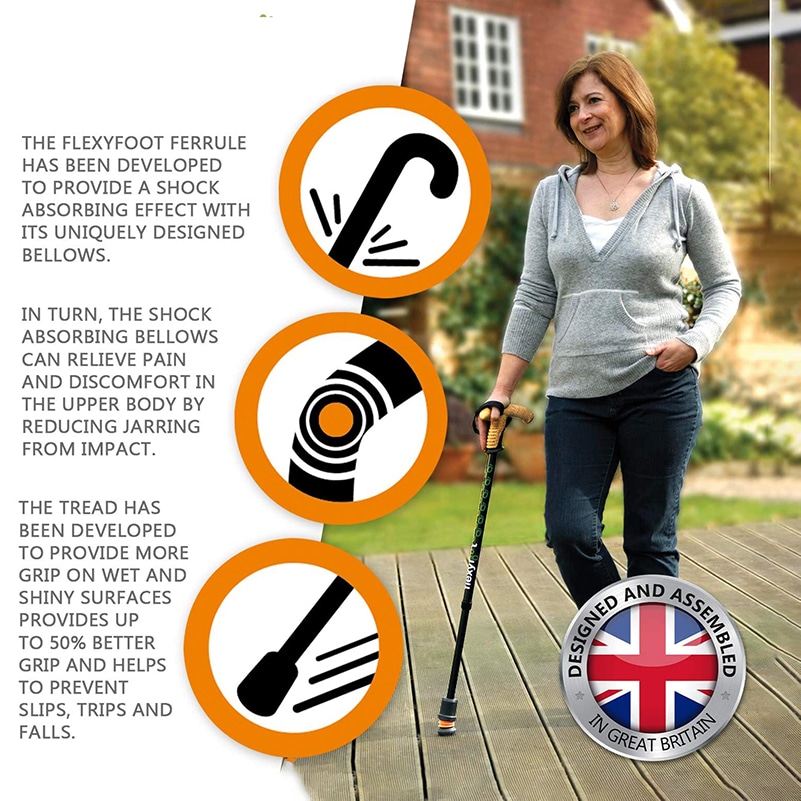 Each foot has the revolutionary FlexyFoot ferrule that absorbs shock on landing, greatly minimises discomfort in your arms and upper body. The flexible foot also remains fully in contact all the time, making for a smoother transition with each step and maximising traction.