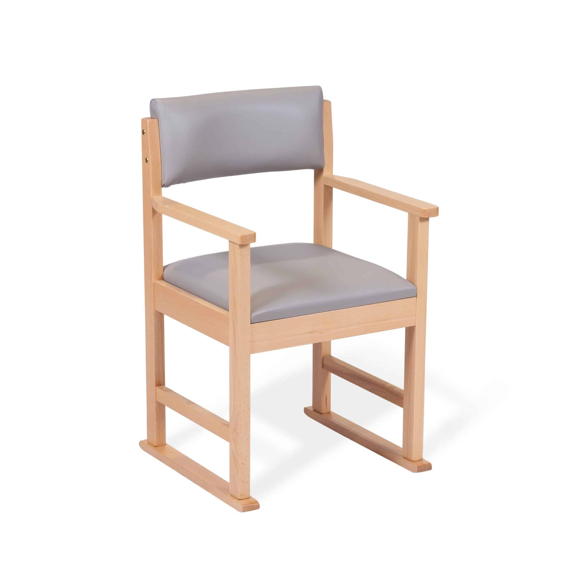 The Glida wooden dining chair is available in a range of Crib 5 fabric or vinyl upholstery, so it’s an ideal option for care homes, assisted living, or anywhere a waterproof or wipe clean dining chair is needed.