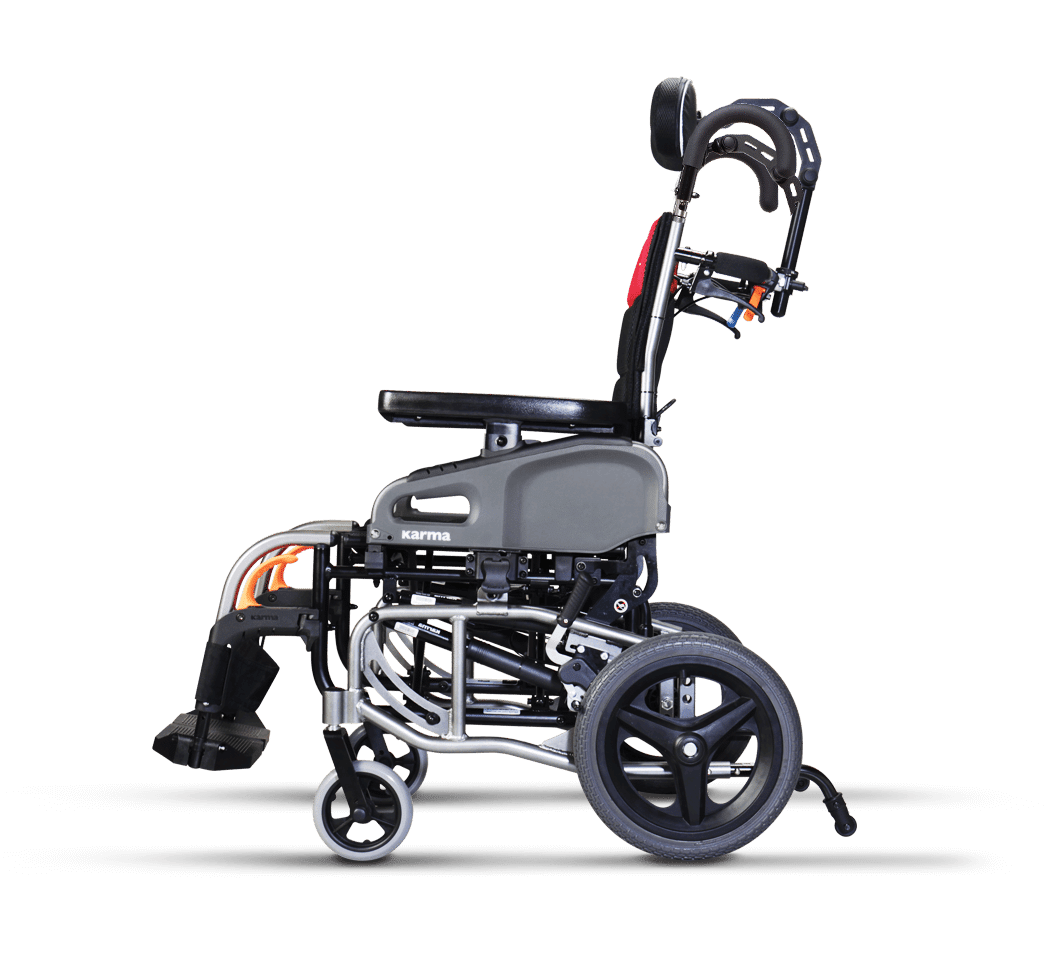 The Karma VIP2 Tilting & Reclining Wheelchair allows wheelchair users with weak trunk control to travel like everyone else. The tilt-in-space and reclining function provide the optimal pressure relief and positioning settings. And thanks to its foldable and lightweight design, it’s also car transportable.