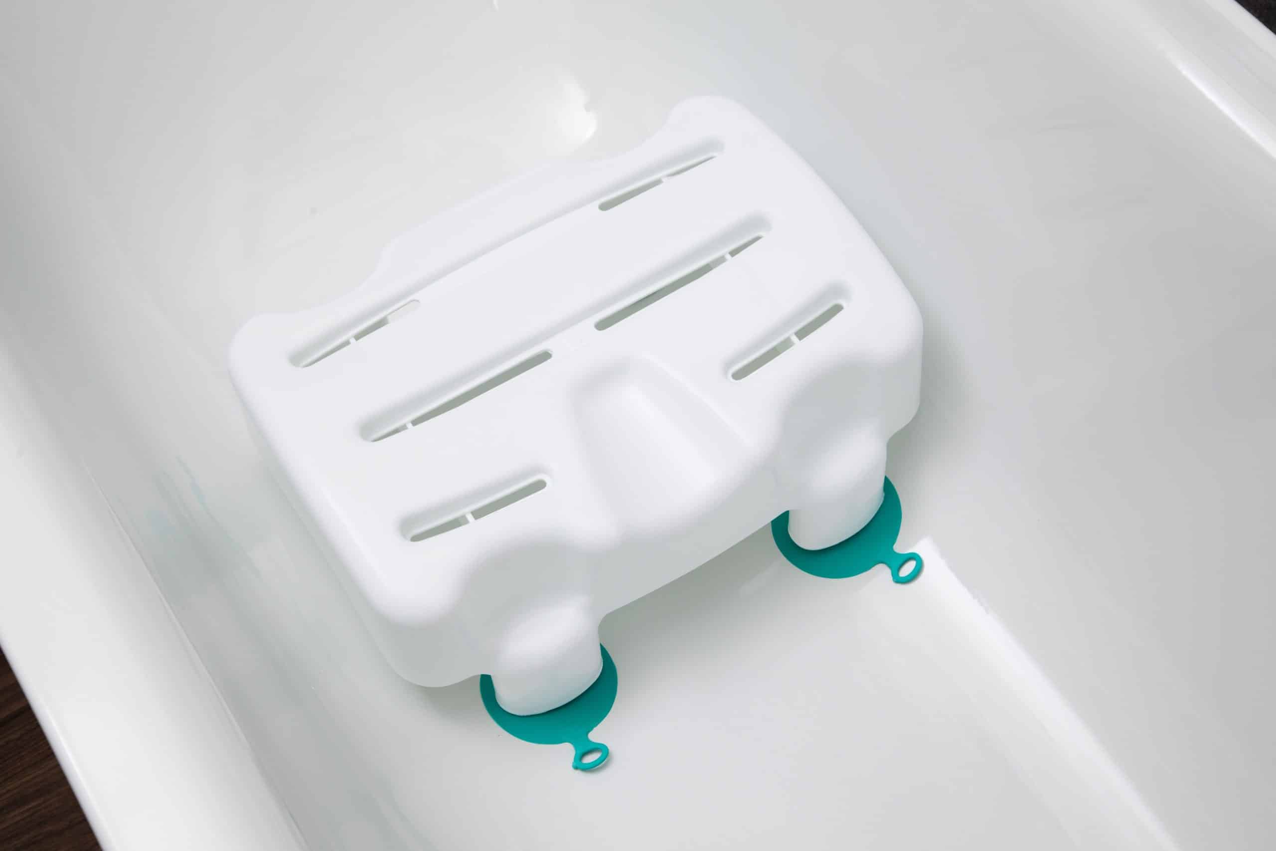 A compact and stable bath seat with suction grips to secure to the base of your bath for safer and easier bathing. Lateral slits allow water to run through the seat to prevent pooling. Choose to set the seat to 150 mm / 6 inches or 200 mm / 8 inches from the base of the bath.