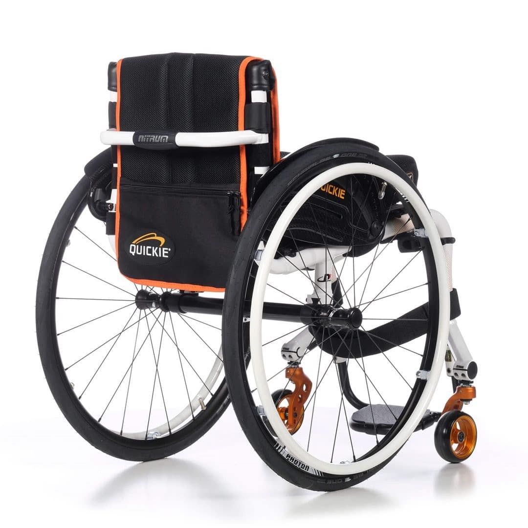 The Quickie Nitrum Active Wheelchair is the lightest adjustable aluminium wheelchair on the market at just 4.9kg lifting weight! Combines weight rigidity, custom fit and fine tuning to offer the most energy efficient Quickie wheelchair ever produced.
