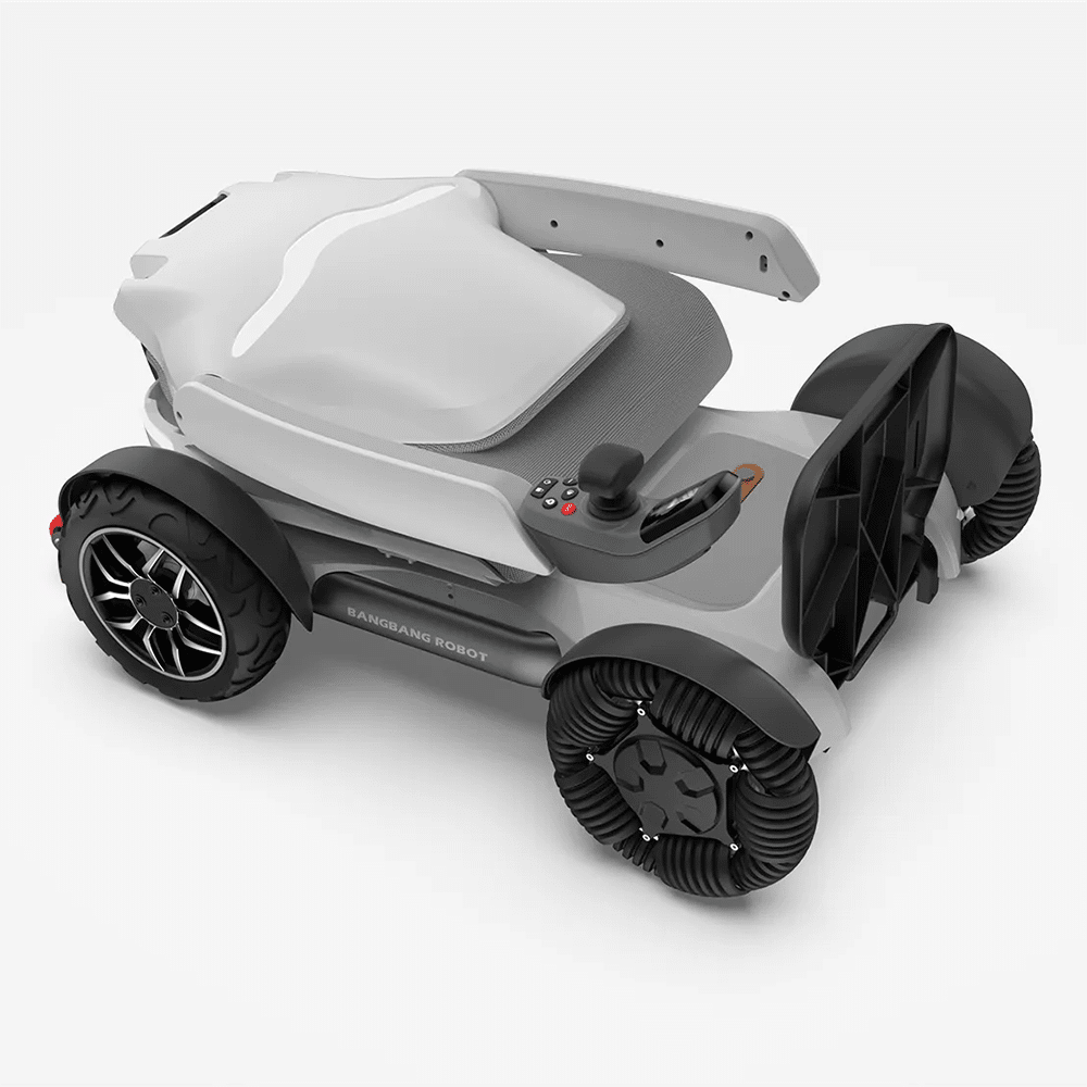 Omnidirectional front wheels for seamless navigation on all surfaces Glide smoothly over any surface with Robooter’s signature omnidirectional front wheels, making movement effortless in every direction.