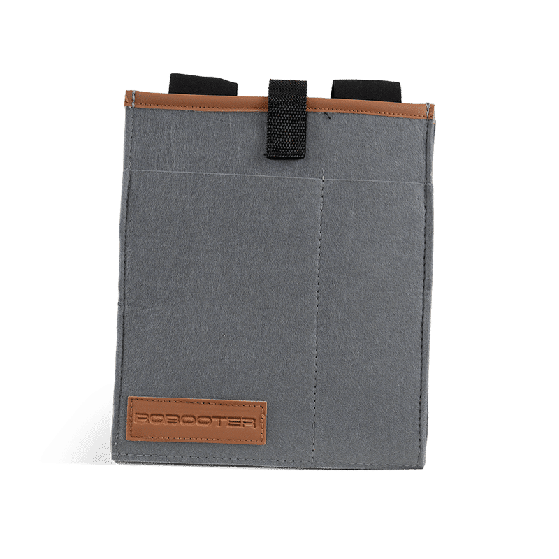 A practical felt storage bag which hangs on the armrest of the Robooter X40 electric wheelchair. Ideal for carrying small personal belongings such as your phone and charger.