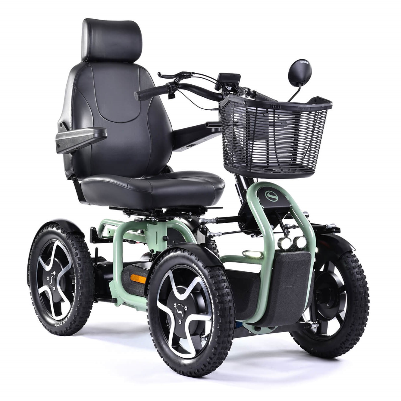 4 large 18-inch wheels with advanced suspension The four large 18-inch wheels with striking rims not only add style but also enhance stability and comfort on any type of road. Their size helps absorb shocks, providing a smoother ride over bumps and uneven surfaces, whether cruising through the city or exploring nature trails. The trail tyres offer superior grip on muddy and slippery surfaces. Combined with a advanced suspension system, these features ensure a smooth and comfortable ride on all types of roads.